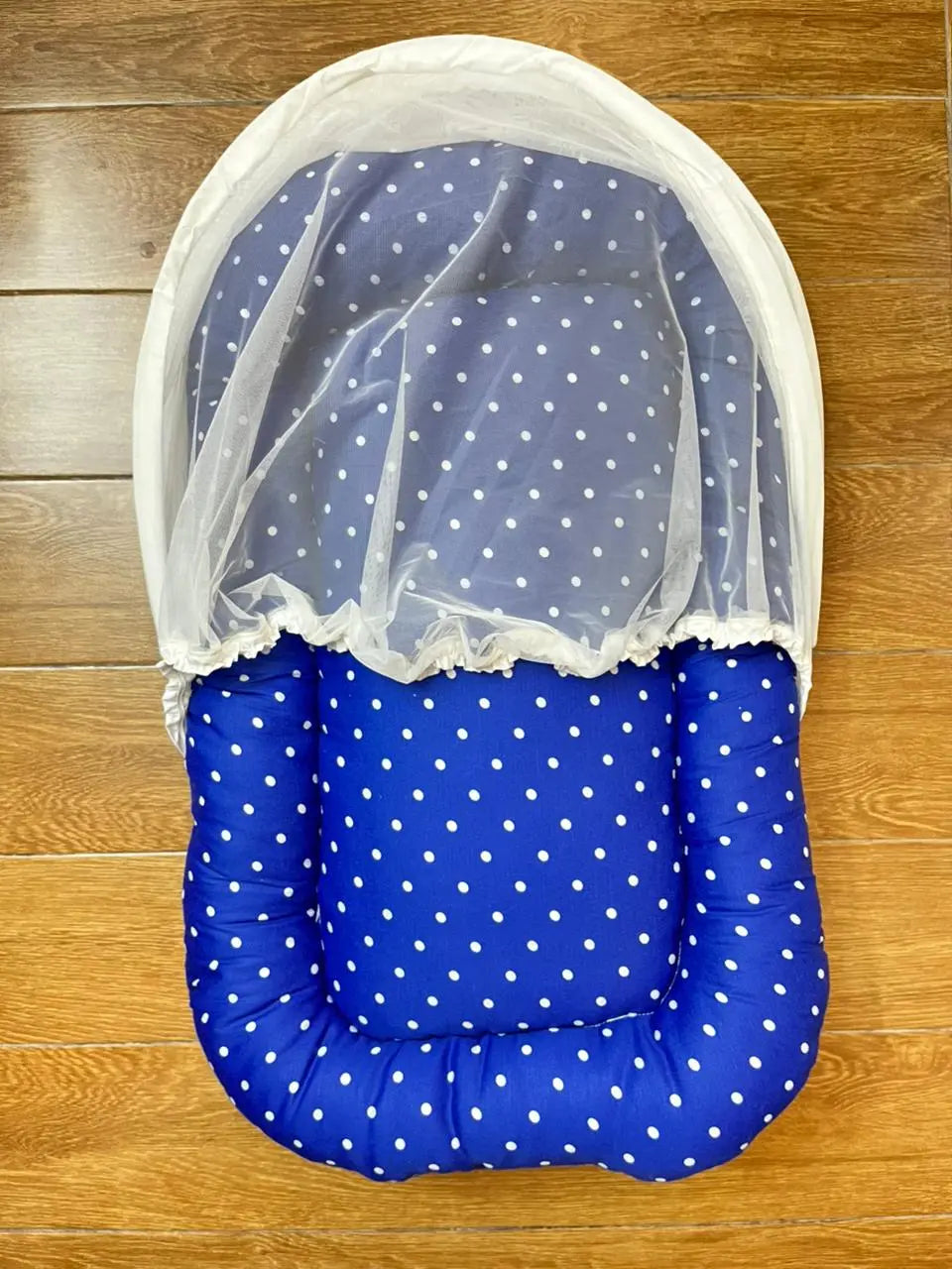 Let your baby drift into cosy dreams with the Little Flower Baby Bed with Net โ designed for comfort, safety, and a touch of sky-themed charm. The soft cotton base offers full-body support, while the breathable net keeps bugs out and peaceful sleep in.