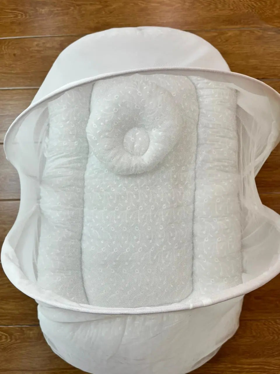 Let your baby drift into cosy dreams with the Little Flower Baby Bed with Net โ designed for comfort, safety, and a touch of sky-themed charm. The soft cotton base offers full-body support, while the breathable net keeps bugs out and peaceful sleep in.