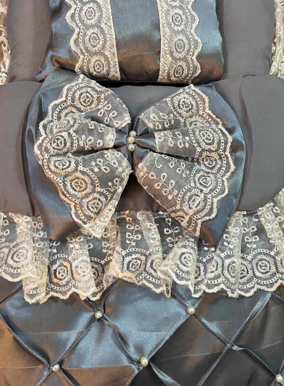 Little Flower – Premium Satin Baby Carry Nest with Lace & Bow – Grey